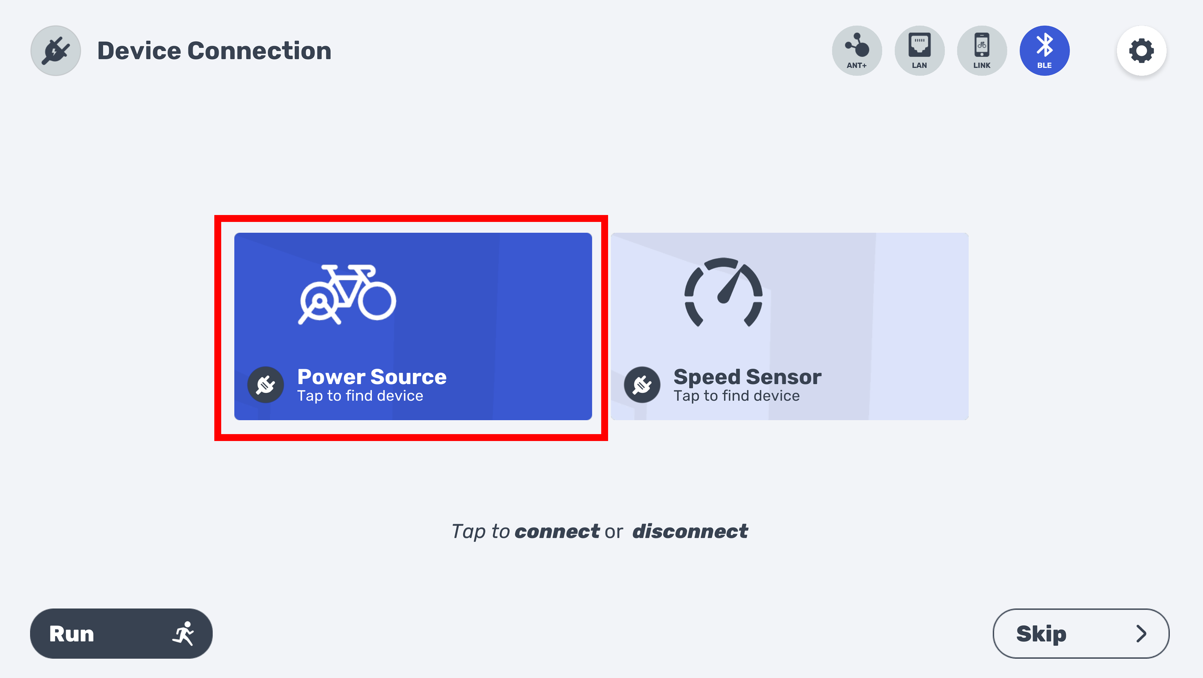 To enjoy all the advantages offered by a controllable device, such as our Zycle rollers or the Smart ZBike, the trainer symbol must appear as "On" after linking it. If it does not appear after a few seconds, click on that section to activate it.
