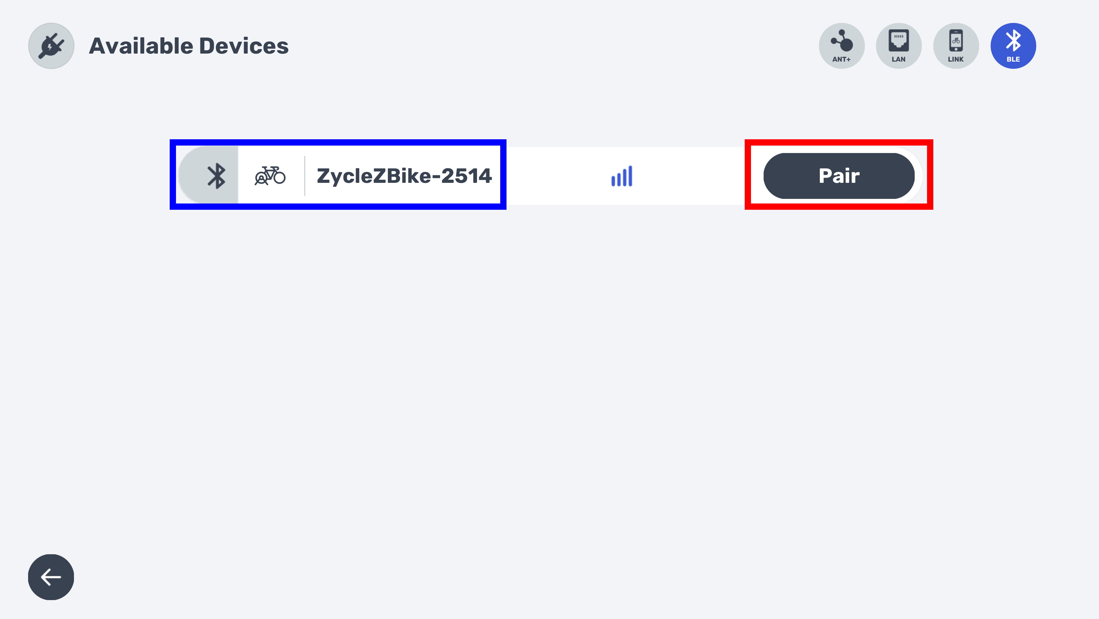 Your Zycle device will appear in the search box. Remember that the device must be connected to the power supply to be detected. Click on "Pair".
