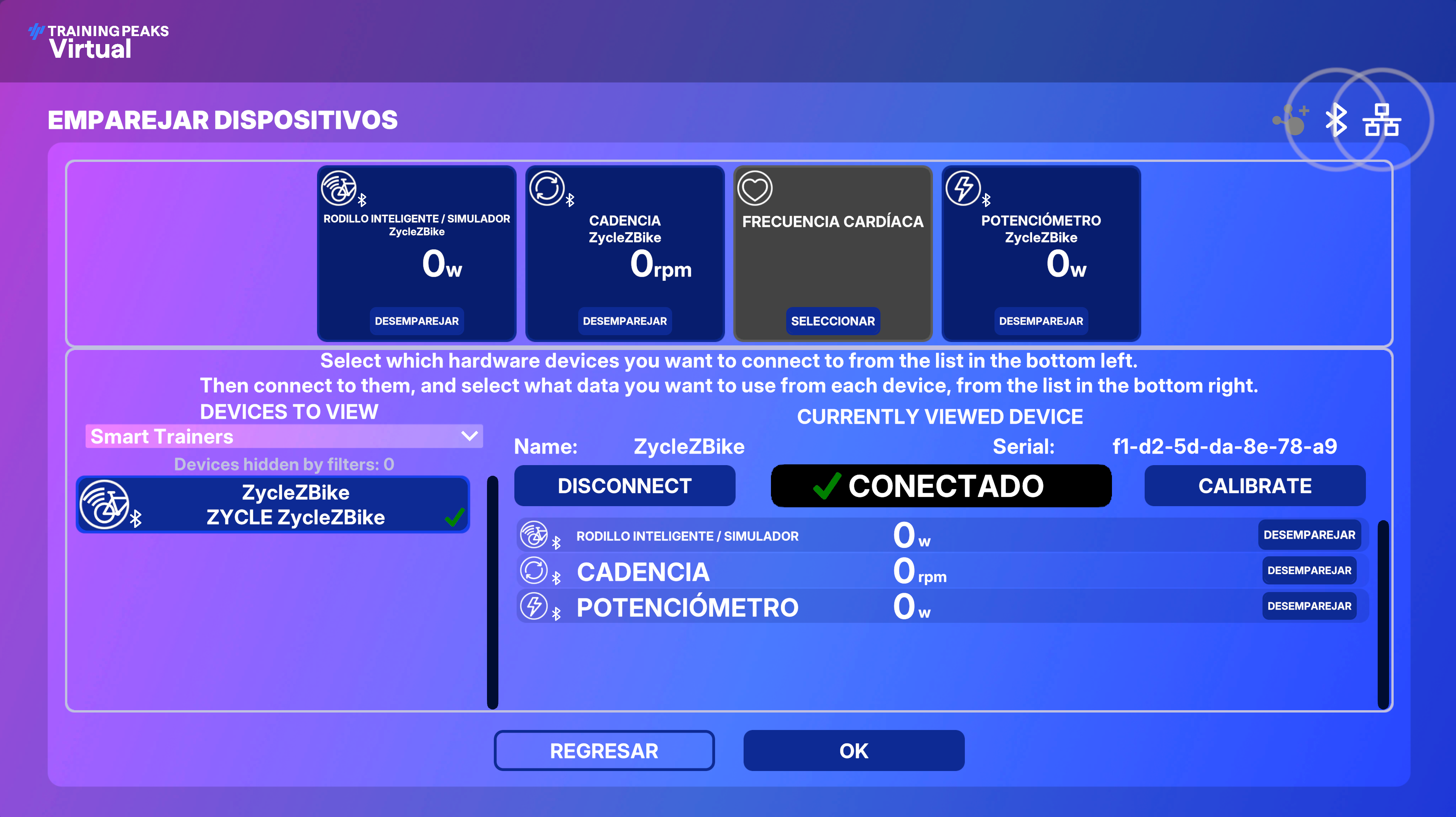 You can take the opportunity to add other devices. Click "OK" and you will have your Zycle ready to roll with TrainingPeaks Virtual.