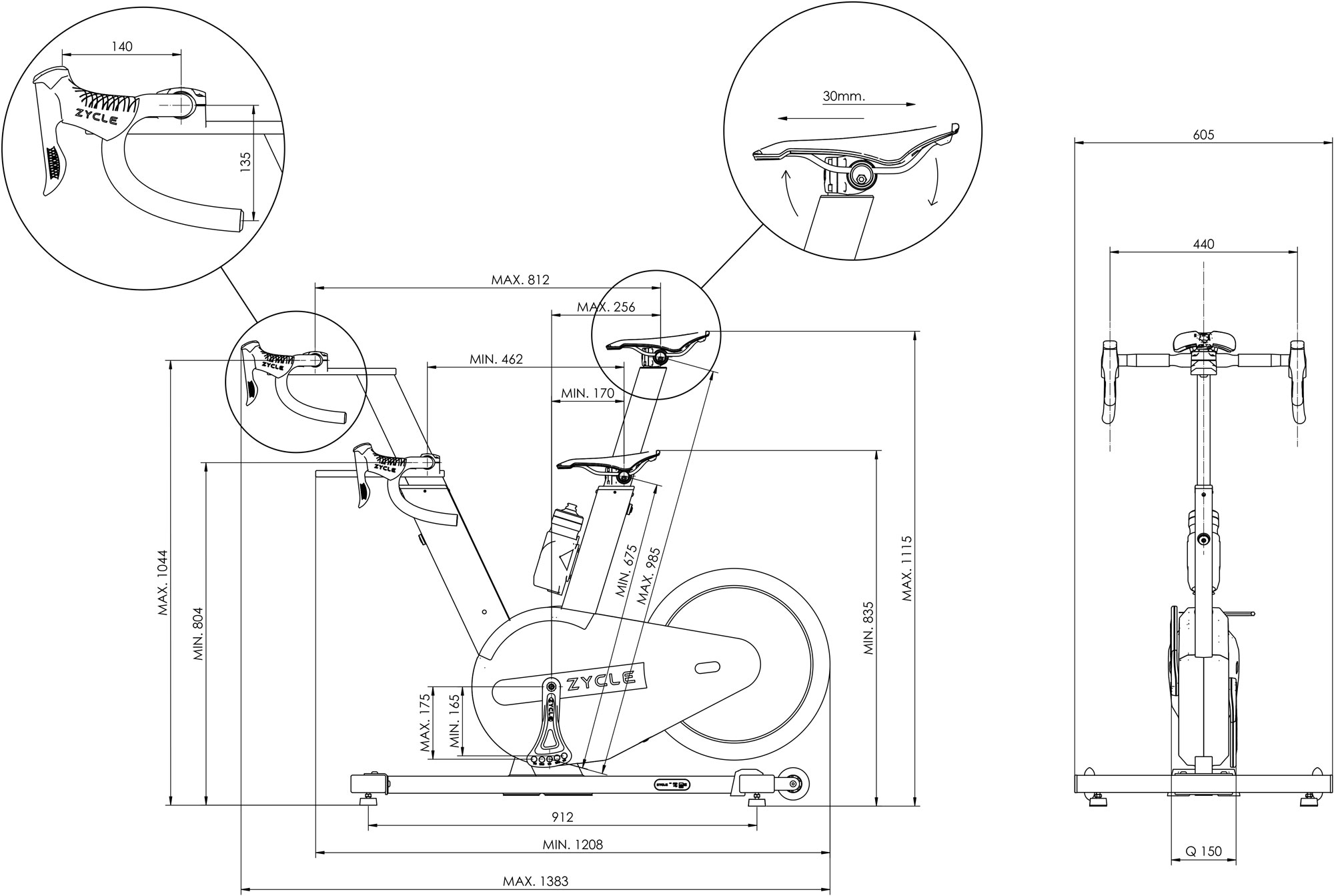 Con un factor Q de 152 mm y bielas multiposición, la ZBike Infinity se adapta biomecánicamente a tu cuerpo. Ajusta la tija, el manillar y las bielas para lograr una postura perfecta, mejor pedaleo y menor riesgo de lesiones.